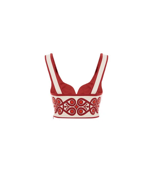 Baia Crop Top Medallion Placée Cream In Flat Cotton Stretch