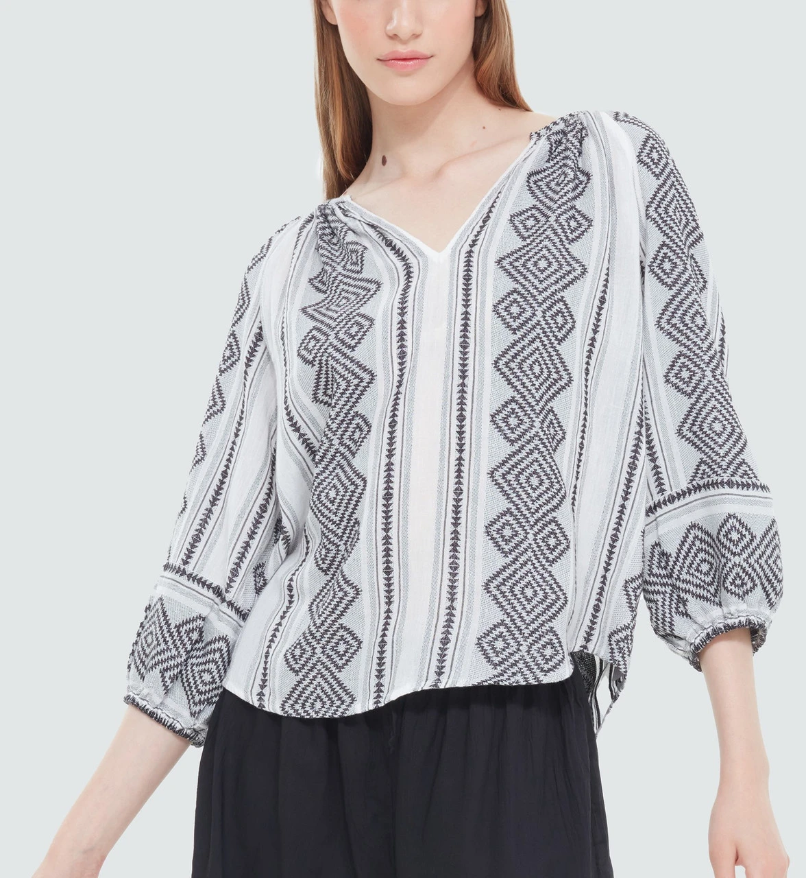 Black Tape Jacquard Print Vneck Top