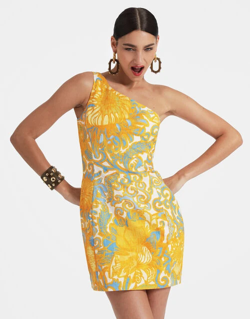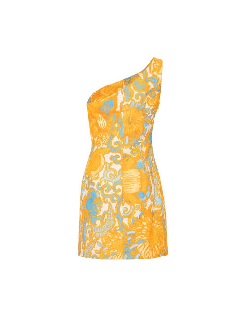Bold Shoulder Mini Dress Anemone Orange In Shot Cotton