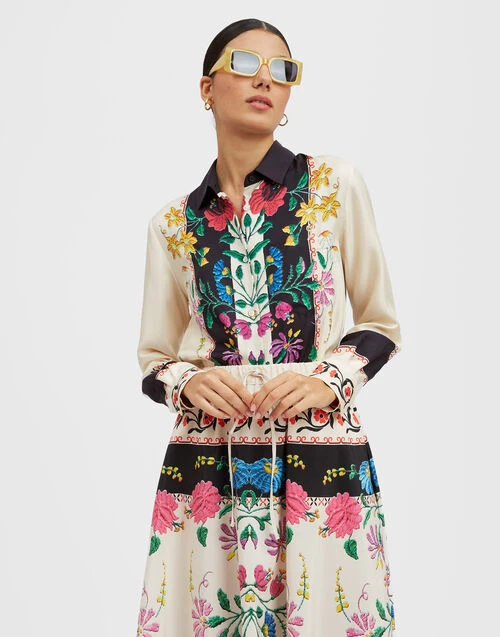 This classic, straight-cut button down silk shirt is timeless and goes with virtually anything in your wardrobe. The fit is straight and feminine with slightly gathered sleeves that hit at the wrist, which brings tons of easy elegance for work, weekends, and just about everywhere else. Featuring blooming florals, this bellissima Plaza print is ripe for spring and is placed by hand for a luxury finish.