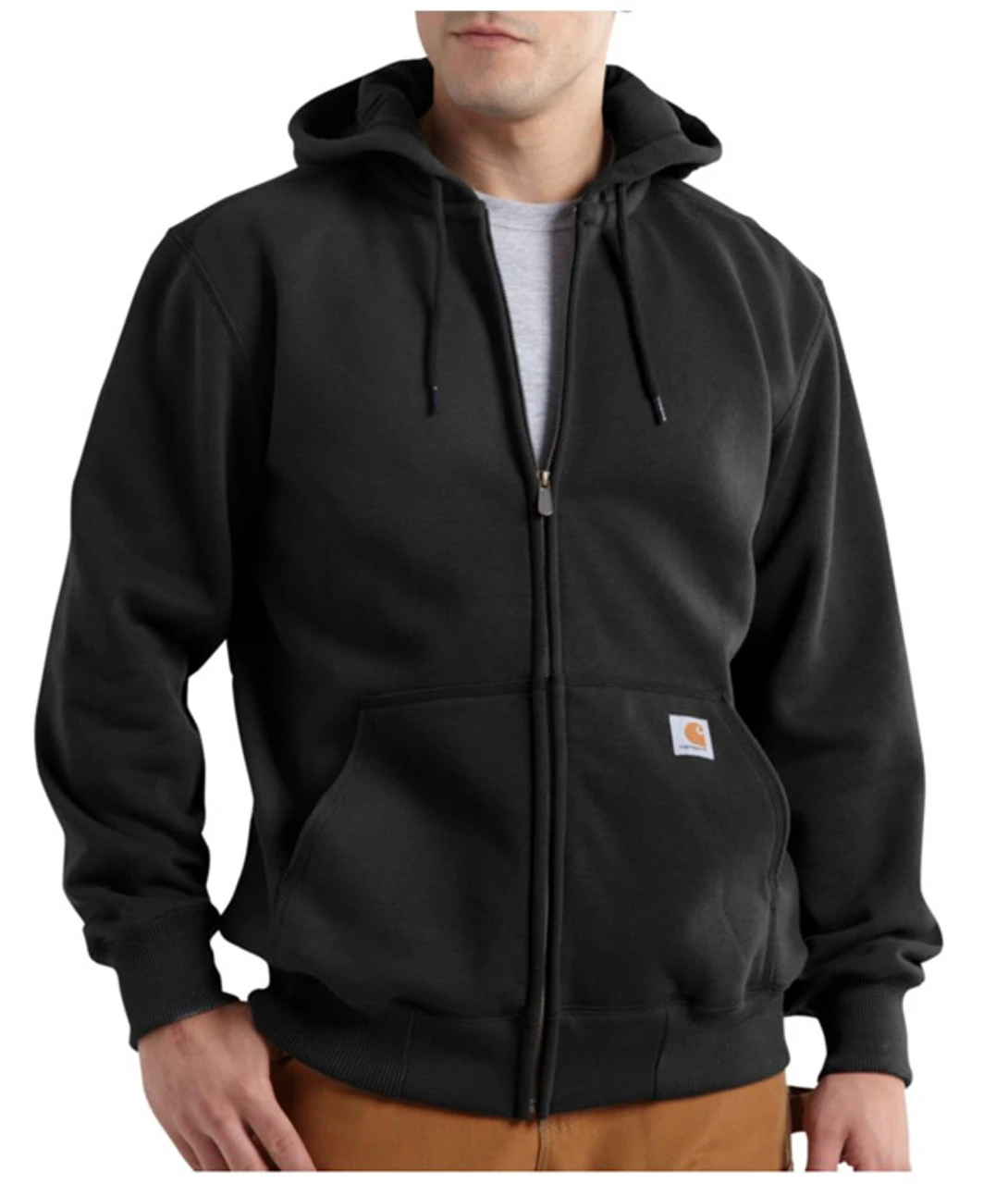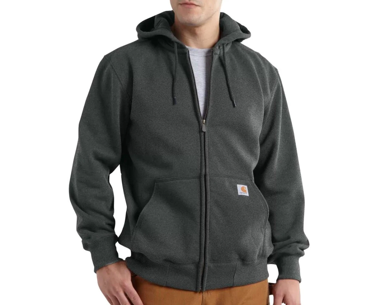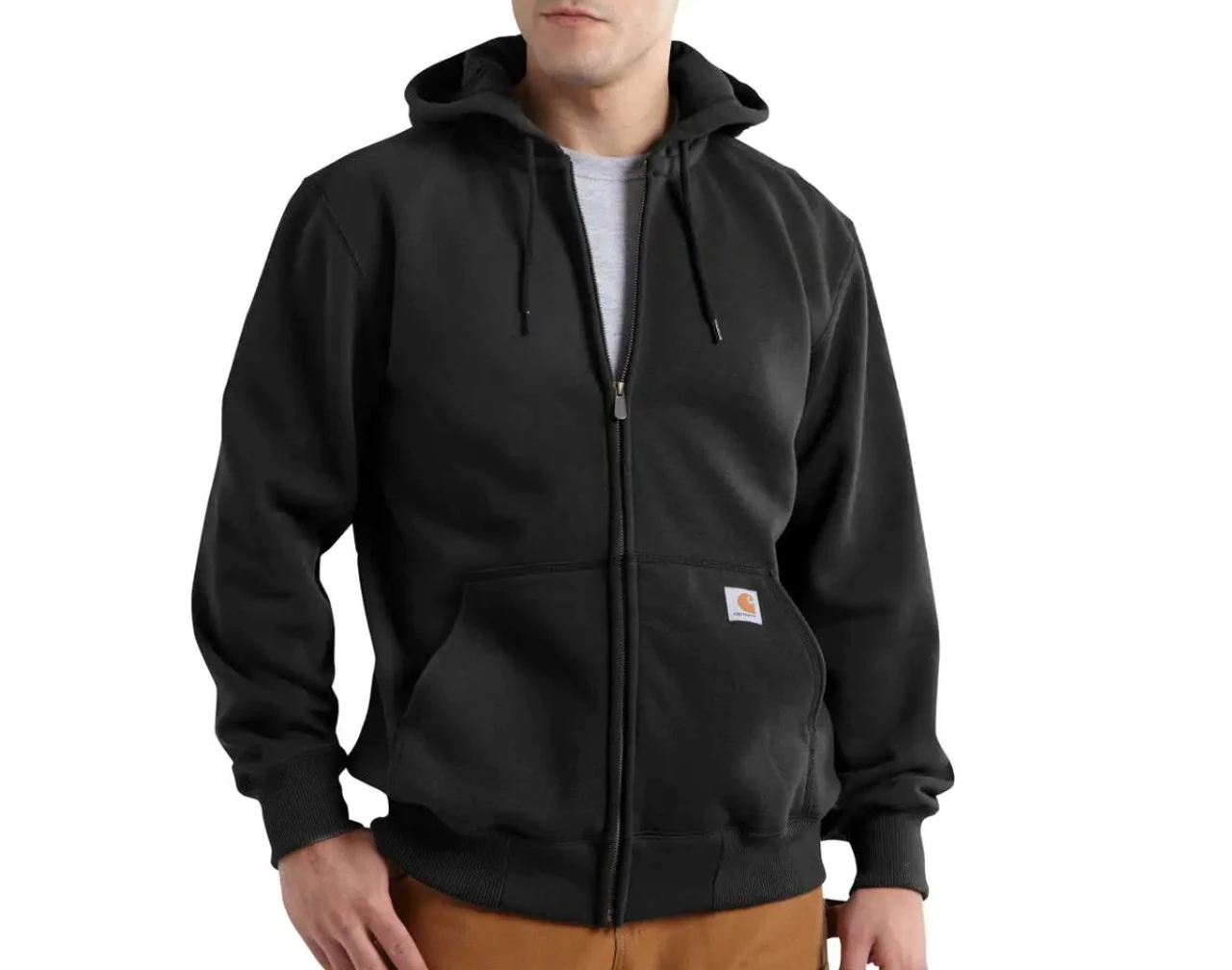 - Carhartt heavyweight thermal-lined, hooded sweatshirt features a Rain Defender® durable water-repellent finish and a zip front for fast layering