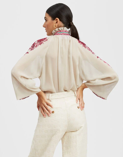 Cerere Blouse Zodiac Placée Purple In Silk Chiffon