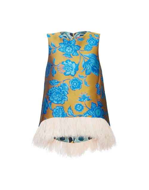 As far as interesting silhouettes go, the La Scala Top may win the gold star. Prime for opera invites, cocktail soirees, Milanese coffee runs and beyond, it arrives in our structured jacquard with an alluring asymmetrical hem and contrast marabou feather trim. Jeans and ballet pumps girls will find it slips in effortlessly with any denim rotation; maximalist mavens seek out the stunning Pencil Skirt to match.