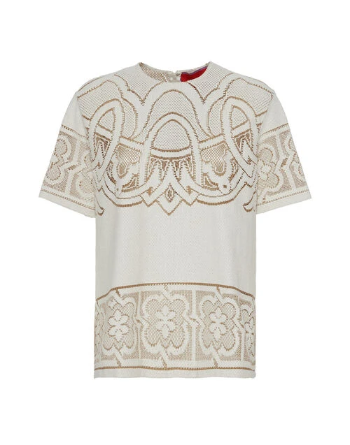 Lacey House T-Shirt Solid White Smoke In Embroidered Cotton