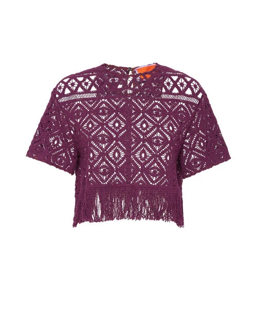 Our favorite high-low tee reimagined in macrame knit to exude dreamy vacation ease wherever you are in the world. With detailed finishing, it features a cool, cropped T-shirt silhouette that leans into a boxy, boyish vibe. Belissima and breezy with the matching macrame Drawstring Skirt or Glastonbury-ready worn with your favorite jeans.
