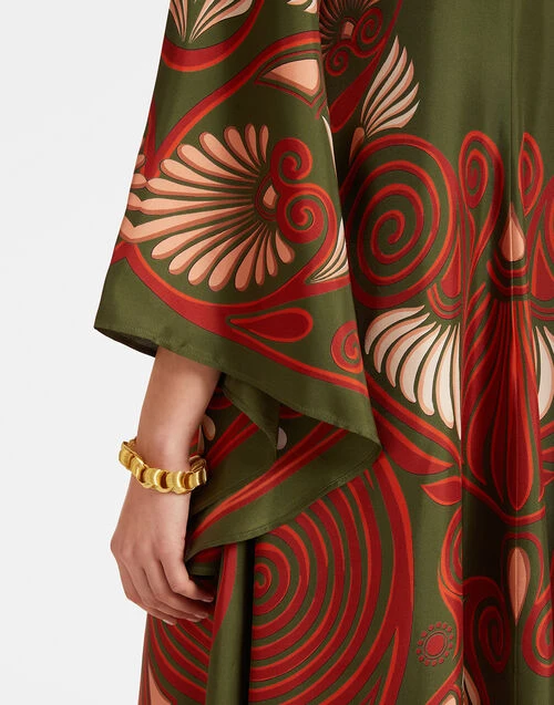 Magnifico Dress Kerylos Placée Dark Green In Silk Twill