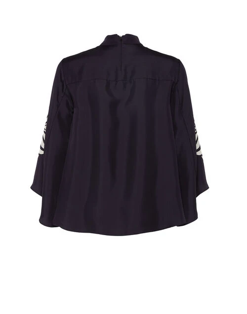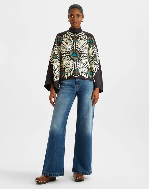 If a top could be a tease, this one would be it. Deceptively demure in the front with a high neck and easy A-line shape through the body, it’s the back of this beauty that truly wows, with a cape-like high-low back that floats as you turn. Crafted in this elegant hand-placed print, our silk twill iteration has date night drama written all over it. Throw it under a gilet or our Folk Jacket for bohemian flare, or with our Milano Skirt for a super chic silhouette.