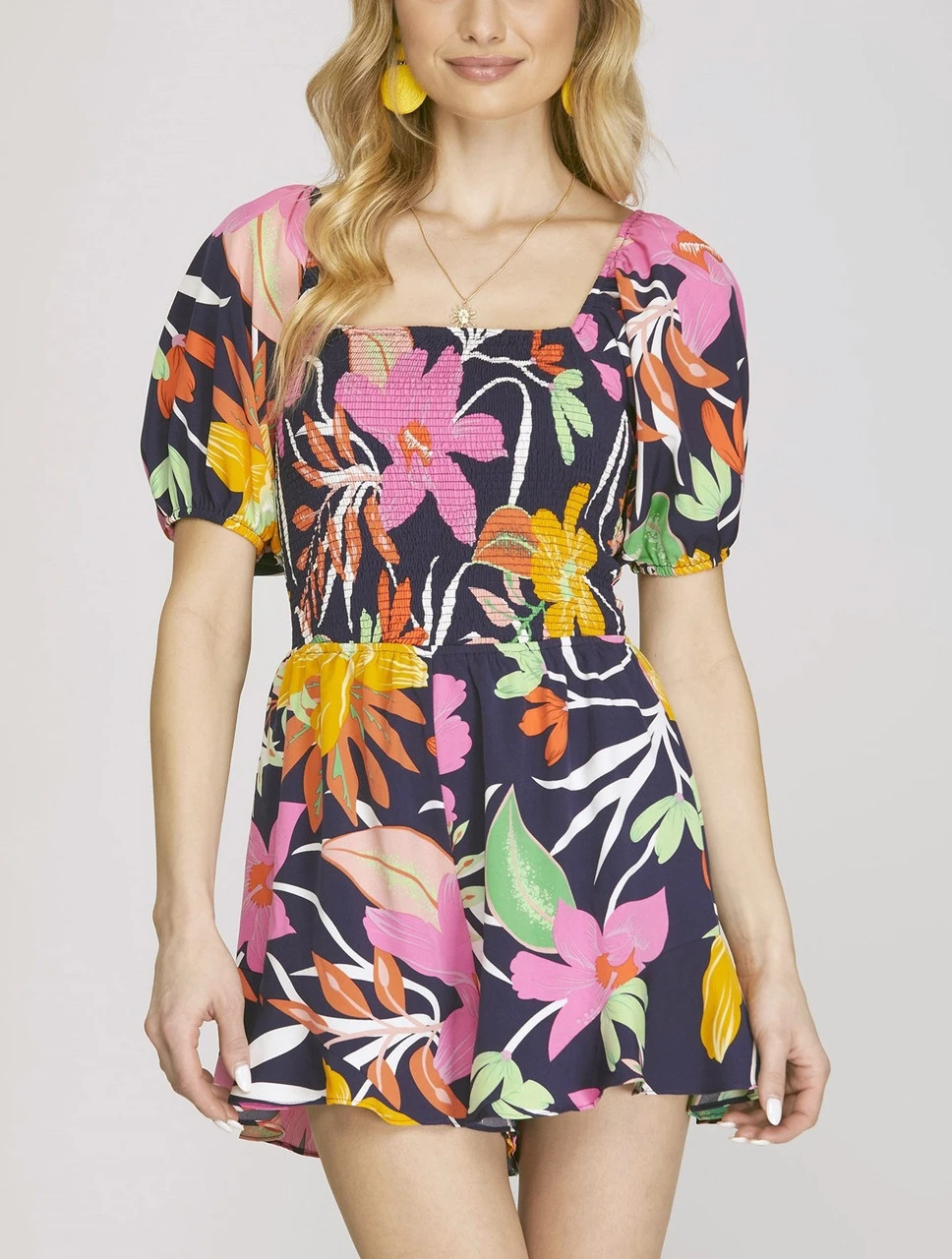 She + Sky Printed Smocked Romper