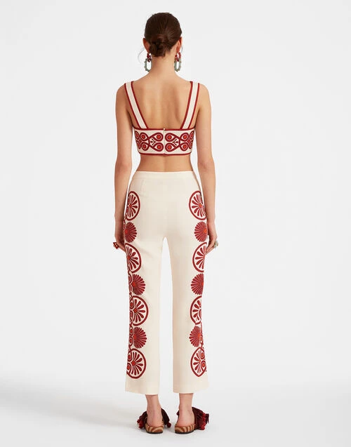 Stretch Pants Medallion Placée Cream In Envers Satin