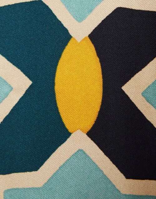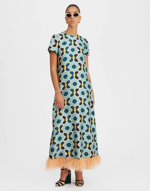 Swing Dress Plaza Light Blue In Silk Twill With Feathers